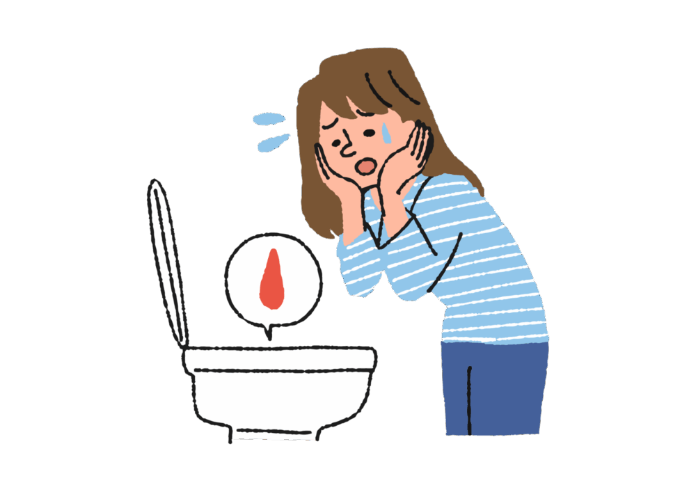 お尻からの出血に気づいたとき、多くの方が「痔かも?」「ストレスのせい?」「大腸がんだったらどうしよう…」と不安になるかと思います。便に鮮やかな赤い血が混じっている場合は、肛門や直腸・大腸の出口付近から出血している可能性が高いと考えられます。(便が黒っぽく見える場合は、食道・胃・十二指腸など、より上部の消化管で出血している可能性があります。)
